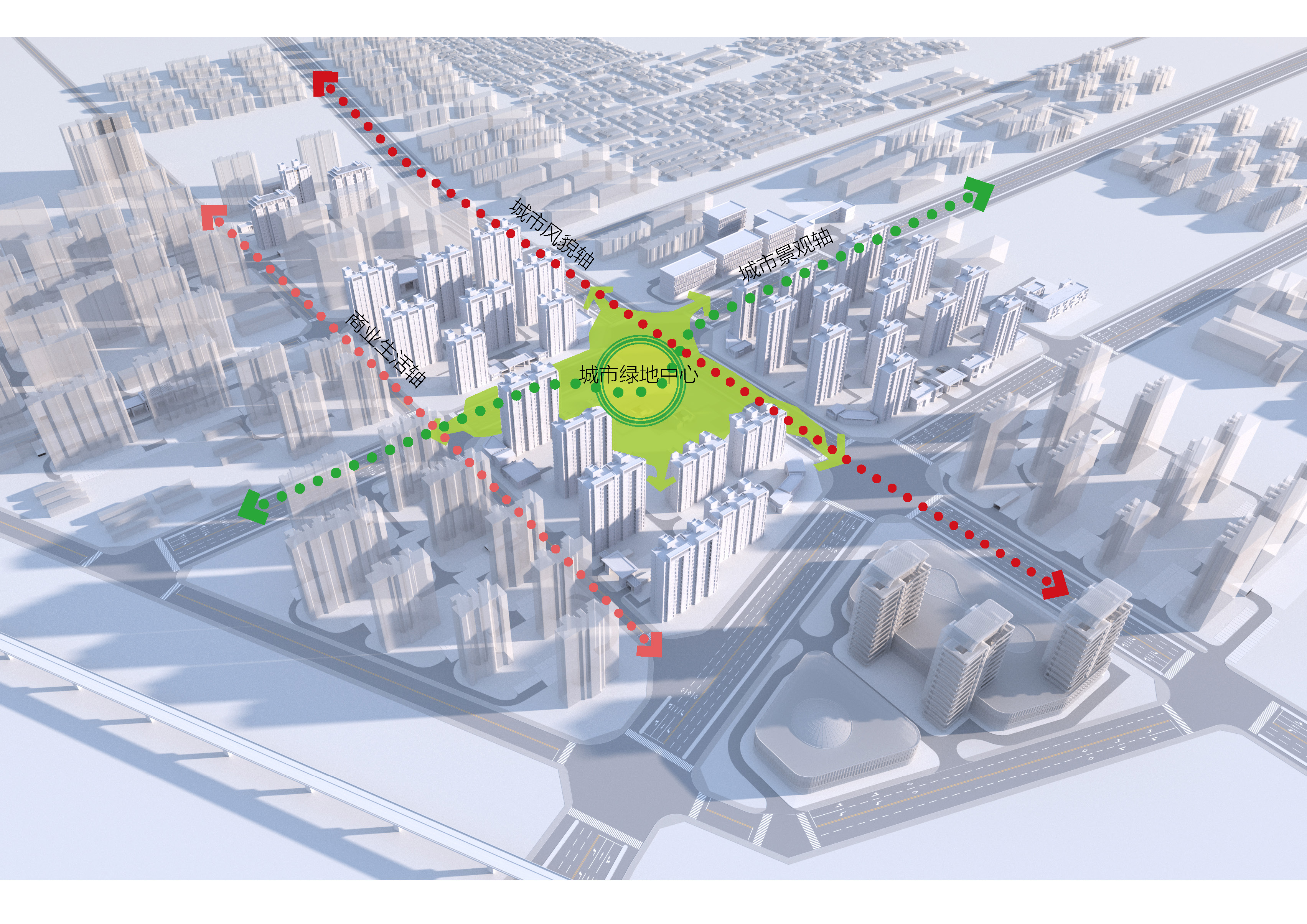 項目規(guī)劃設(shè)計理念為“一心兩軸”。其中,“一心”是結(jié)合區(qū)域文脈,打造以梁氏宅院所在城市綠地為中心的組團(tuán)社區(qū);“兩軸”一是沿城市主路營造建筑錯落有致的城市風(fēng)貌軸、二是沿張營大街打造城市景觀軸。通過“一心兩軸”的打造,優(yōu)化城市風(fēng)貌建筑空間形象,構(gòu)筑宜人的開放空間,創(chuàng)建完善的綠色交通系統(tǒng)以及布局完備的配套服務(wù)設(shè)施。