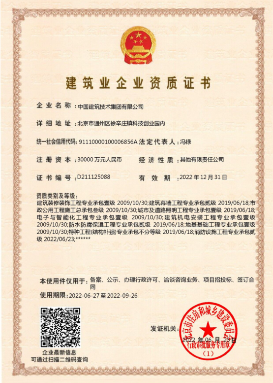 ?6月23日,經(jīng)北京市住房和城鄉(xiāng)建設(shè)委員會(huì)核準(zhǔn),中技集團(tuán)獲批消防設(shè)施工程專業(yè)承包二級(jí)資質(zhì)。該資質(zhì)的獲批,成為中技集團(tuán)落實(shí)“十四五”規(guī)劃精神,打造全產(chǎn)業(yè)鏈平臺(tái)優(yōu)勢(shì)的又一可喜成果。