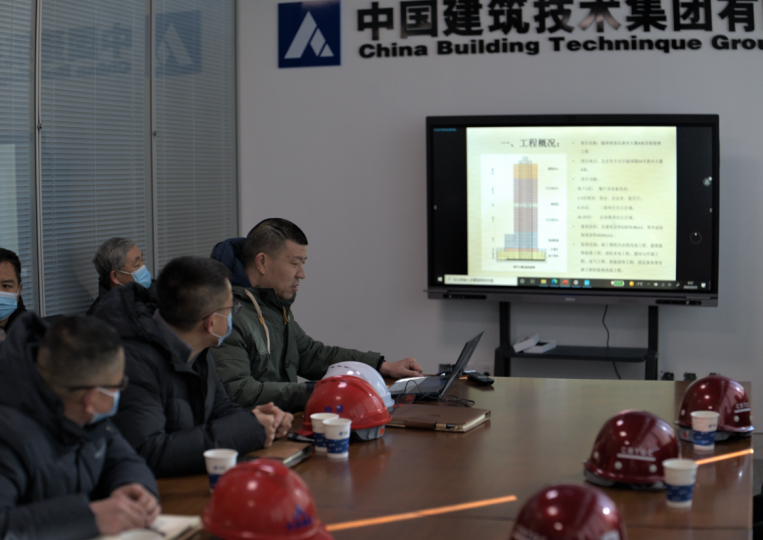 中技集團第二工程分公司副總經(jīng)理韓玉文對鼎興大廈工程裝修項目概況和項目生產(chǎn)進度情況進行了匯報,中國建研院和中技集團領導一行詳細了解了項目特色、施工進度、安全管理及質(zhì)量管控情況,并對項目部目前的整體管理給予肯定,同時就項目建設、安全生產(chǎn)、疫情防控等重點工作提出要求。