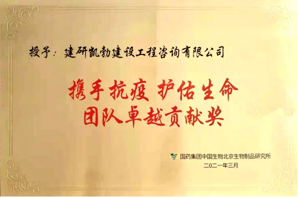 3月27日,集團(tuán)公司下屬子公司建研凱勃建設(shè)工程咨詢(xún)有限公司(以下簡(jiǎn)稱(chēng)“建研凱勃”)榮獲國(guó)藥集團(tuán)中國(guó)生物北京生物制品研究所頒發(fā)的“攜手抗疫護(hù)佑生命”團(tuán)隊(duì)卓越貢獻(xiàn)獎(jiǎng)。
