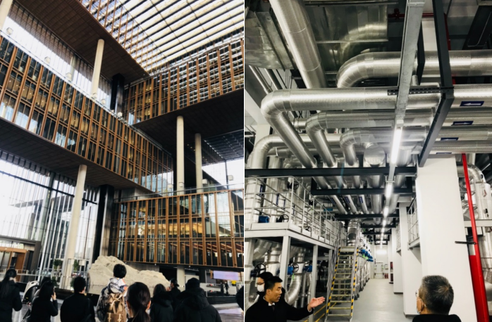 亞洲基礎(chǔ)設(shè)施投資銀行總部是國家“一帶一路”倡議建設(shè)重點(diǎn)工程,也是首個由我國倡議成立的政府間多邊開發(fā)機(jī)構(gòu)??偛看髽且浴棒敯噫i”為設(shè)計理念,高空俯視的“中國結(jié)”寓意著“中國結(jié)·連接世界”,彰顯著我國開放自信的姿態(tài)。設(shè)計師們在講解員的帶領(lǐng)下先后參觀了公共區(qū)域、辦公區(qū)域和設(shè)備機(jī)房等,全面了解了大樓的建筑特色,80米高的挑空大廳和7個采光中庭的設(shè)置使所有工作區(qū)享受開闊視野與均衡采光,10處空中花園的置入營造出了兼具藝術(shù)性和實(shí)用性的綠色多元復(fù)合空間,總部大樓與眾不同的設(shè)計巧思和精妙絕倫的建筑技術(shù)令在場的設(shè)計師們深感震撼。