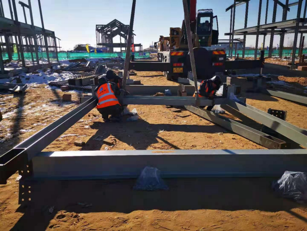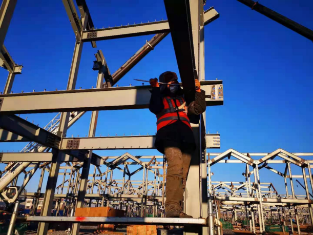 為確保工期,天津鋼結(jié)構(gòu)分公司負(fù)責(zé)人張衍雷以身作則,下基層,駐現(xiàn)場,第一時間解決遇到的困難和問題,確保重要工序24小時不停產(chǎn),為現(xiàn)場施工的有序進(jìn)行提供了良好保障。在氣溫零下26度的施工現(xiàn)場,施工管理人員和安裝作業(yè)人員40余人冒著凜冽寒風(fēng),克服冬季白晝時間短、冰天雪地安裝難以施展等諸多困難,穩(wěn)步推進(jìn)工程進(jìn)度,充分展現(xiàn)了鋼構(gòu)鐵軍能打硬仗、吃苦耐勞的良好精神風(fēng)貌。?