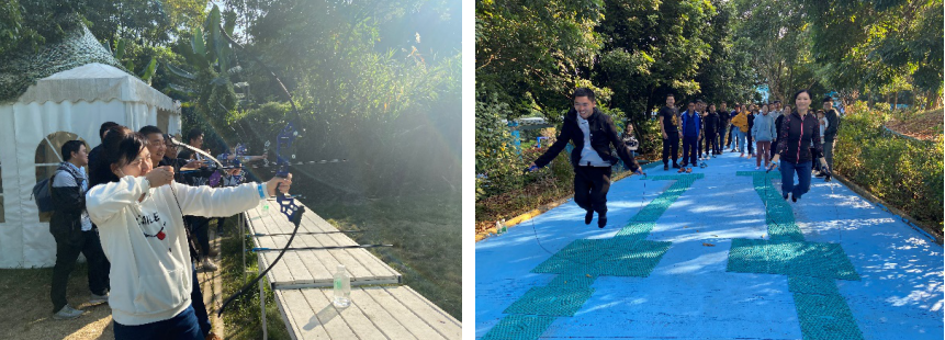 團(tuán)建活動(dòng)在趣味比賽中拉開(kāi)帷幕,通天塔、勇闖指壓板、射箭等比賽環(huán)環(huán)相扣,精彩紛呈,員工們?cè)谙硎鼙荣悗?lái)的歡樂(lè)的同時(shí),也充分展現(xiàn)著互幫互助,協(xié)同奮進(jìn)的良好風(fēng)貌。