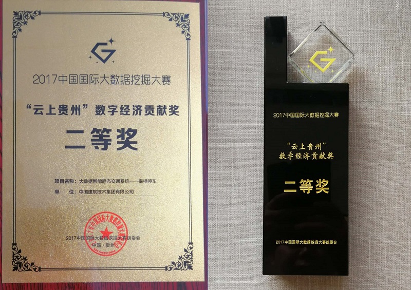 2017年12月28日,2017中國國際大數(shù)據(jù)挖掘大賽在貴州省貴陽市落幕,我公司基于大數(shù)據(jù)云平臺的智能停車項目--宰相停車項目,獲得“云上貴州-數(shù)字經(jīng)濟貢獻(xiàn)獎”二等獎。