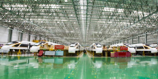 ▲中車長客“復(fù)興號”中國標準動車組裝配現(xiàn)場