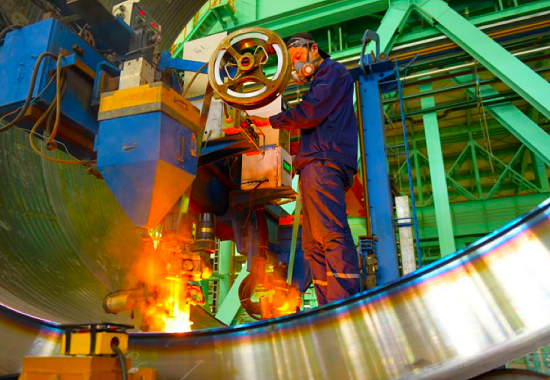 ▲中國一重大連核電石化公司石化筒節(jié)生產(chǎn)場景
