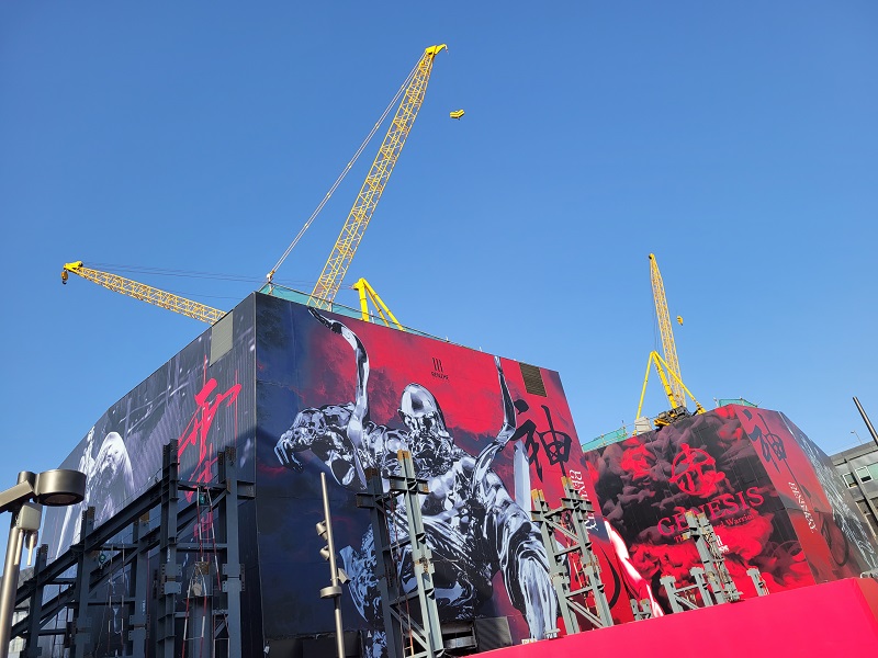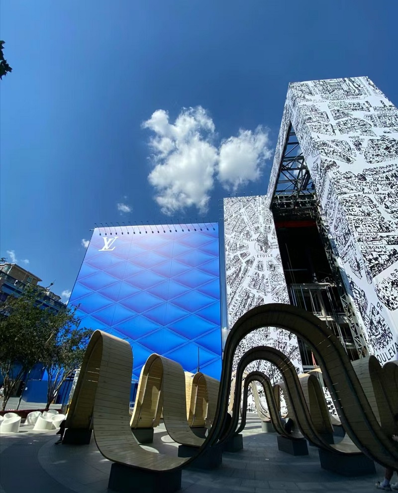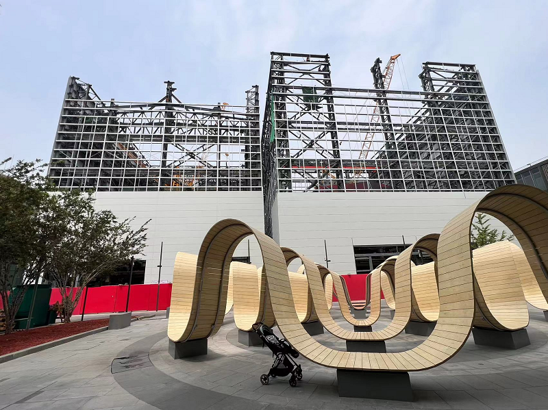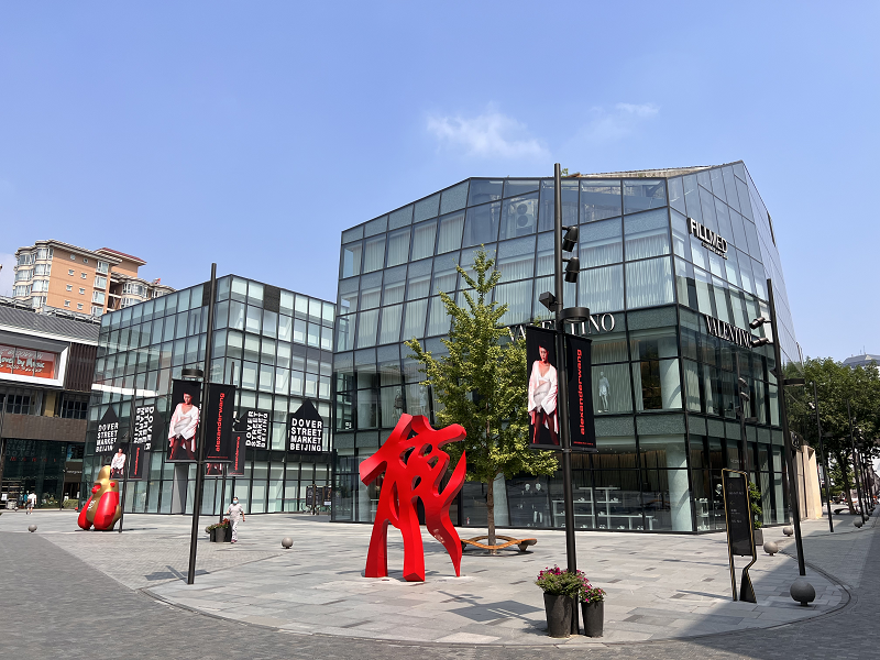 本項目施工內(nèi)容包括2棟樓的拆除、重建、加固、機電工程、幕墻、電梯安裝與裝飾裝修。項目位于三里屯繁華鬧市區(qū),東臨使館區(qū)、南連南區(qū)商業(yè)區(qū)、西和北側(cè)為住宅區(qū),周邊商業(yè)需正常運營,致使白天物料與大型車輛運輸受限,運輸需在夜間進行,因此項目實施只能在非營業(yè)時間開展,且吊裝作業(yè)僅能于每日上午進行。此項目對現(xiàn)場安全文明施工要求頗高,同時涉及市政管線、綠化移植、夜間施工、施工占道等大量需與政府部門溝通協(xié)調(diào)之事,且現(xiàn)場無臨時設(shè)施用地。