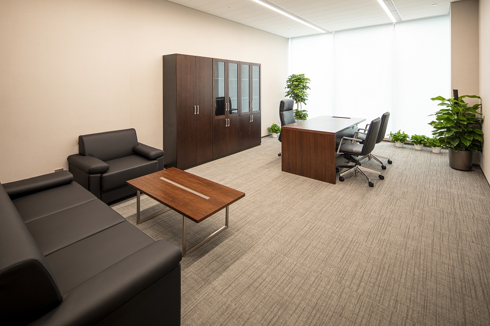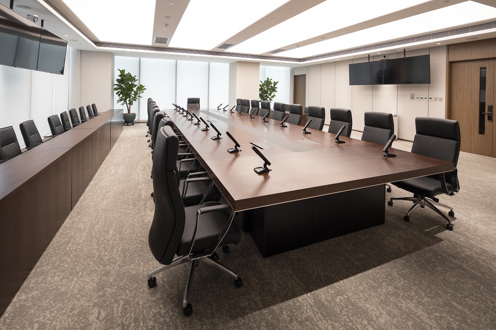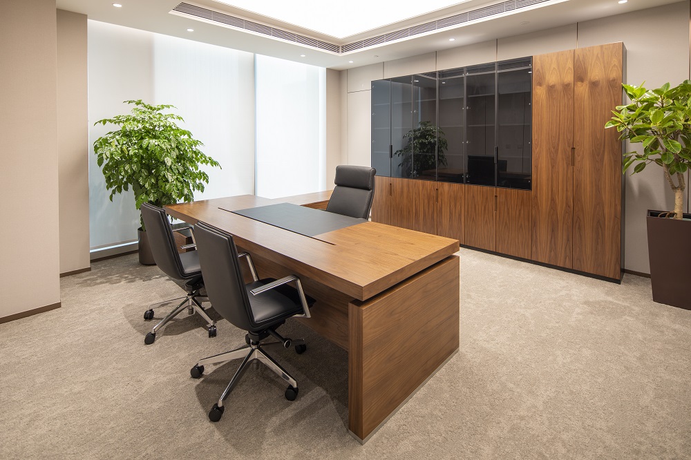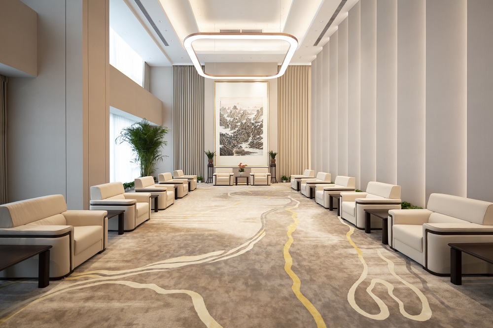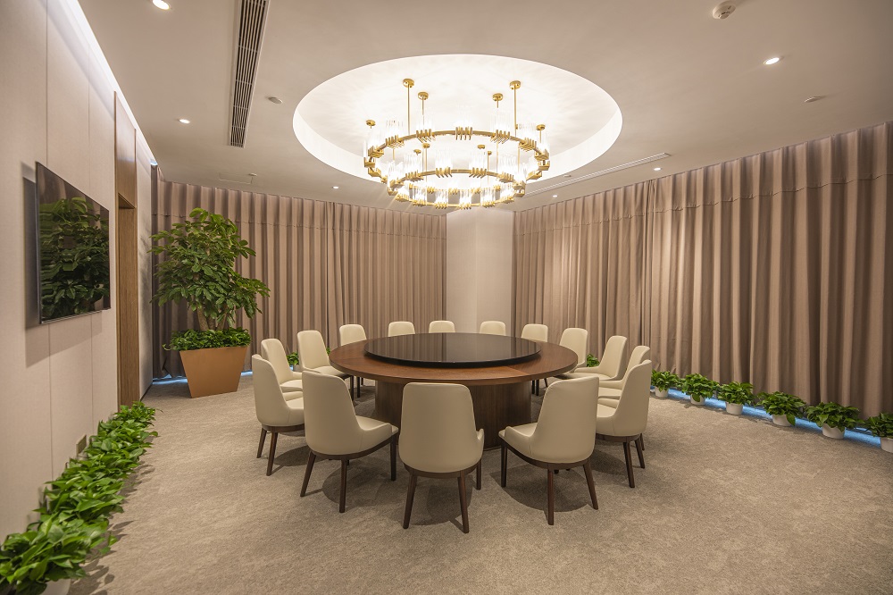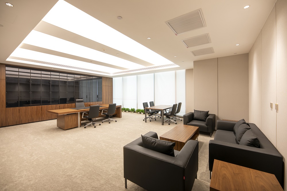 本次改造根據使用單位的需求,在維持建筑外立面和室外景觀的前提下,對原有建筑進行了平面重新布局及裝飾裝修,并根據新的使用功能對機電系統(tǒng)進行了調整。改造后的建筑滿足現行的建筑標準規(guī)范,并滿足使用方的現代辦公需求。以“一級央企、國內一流、具有國際影響力”的大國企業(yè)總部形象服務全國并面向國際舞臺,所以重點打造莊重、現代、統(tǒng)一、大氣、低調、品質的空間特點,使辦公空間代表大國形象、展示央企文化;延續(xù)傳統(tǒng)國企表現出的典型特征,提升內部空間整體品質。圍繞設計理念構思方案,把握規(guī)劃布局的宏觀標準,定位企業(yè)形象,提煉設計手法,營造空間氛圍;對大廳、會議、報告廳、會客、餐廳、辦公等重點空間深化設計匹配一級央企的總部形象。