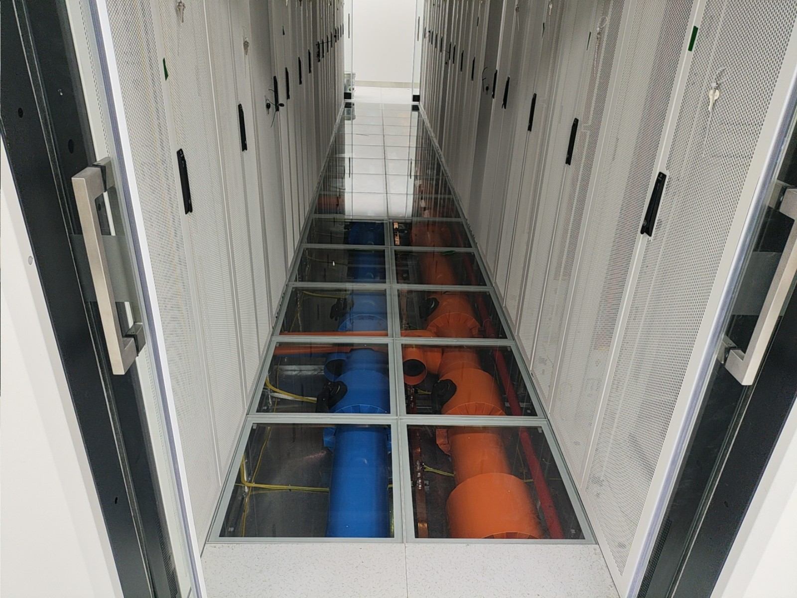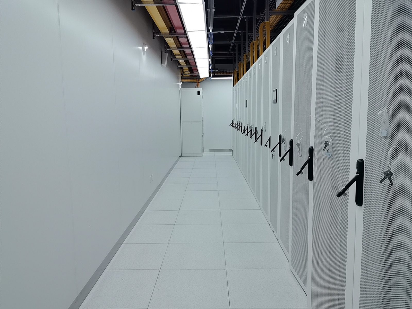 通過部署華為一體化模塊化UPS,我們實(shí)現(xiàn)了設(shè)備空間占用的顯著節(jié)約、連接線纜的減少以及系統(tǒng)可靠性的提升。維諦品牌的微模塊成套系統(tǒng),包括機(jī)柜、精密空調(diào)、動(dòng)環(huán)監(jiān)控和電池監(jiān)控等組件,不僅系統(tǒng)集成度高,而且可靠性強(qiáng),其軟件平臺(tái)的開發(fā)響應(yīng)也十分及時(shí)。西門子的密集母線和智能小母線系統(tǒng),集成了母線測(cè)溫和在線監(jiān)控功能,進(jìn)一步增強(qiáng)了系統(tǒng)的可靠性。封閉熱通道的設(shè)計(jì),確保了系統(tǒng)擁有充足的冷量?jī)?chǔ)備,從而提高了容災(zāi)能力。封閉通道的玻璃觀察地板和內(nèi)部管道的PVC彩殼包覆,不僅保證了整體風(fēng)格的統(tǒng)一和協(xié)調(diào),還提升了美觀度。仿真測(cè)試機(jī)房3,一個(gè)280平方米的屏蔽機(jī)房,其頂面殼體設(shè)計(jì)為平頂,并且封閉熱通道采用了95吋LED顯示屏整體式移門,極大地提升了觀摩機(jī)房的視覺效果。在整體顏色管理方面,我們采用了紅/黃雙色對(duì)供配電A/B路、密集母線、智能小母線、電力電纜、PDU外殼等進(jìn)行區(qū)分,確保了清晰醒目。此外,采用彩鋼板墻面和夾心彩鋼板頂面,有效提升了機(jī)房的潔凈度和防塵能力。