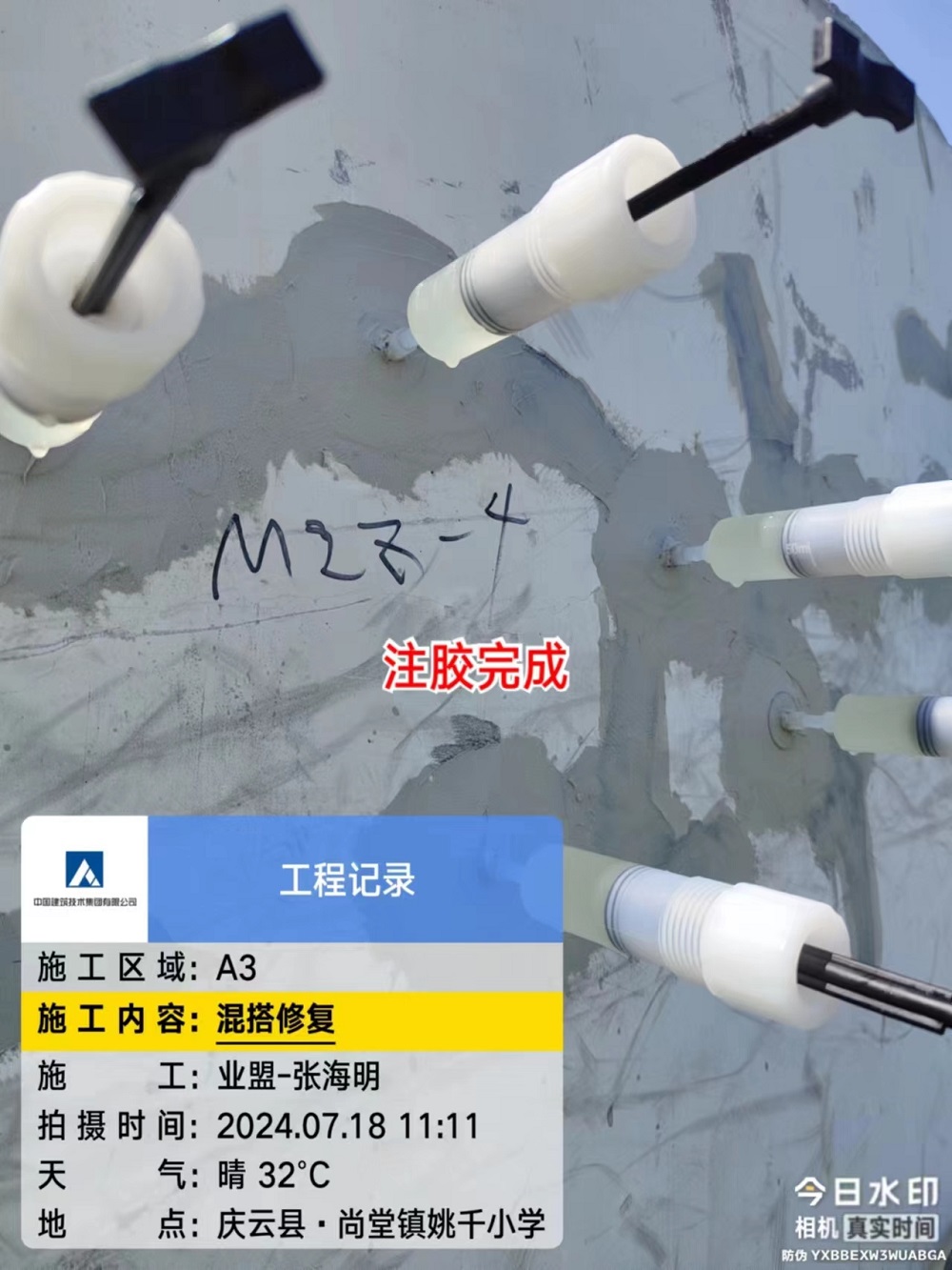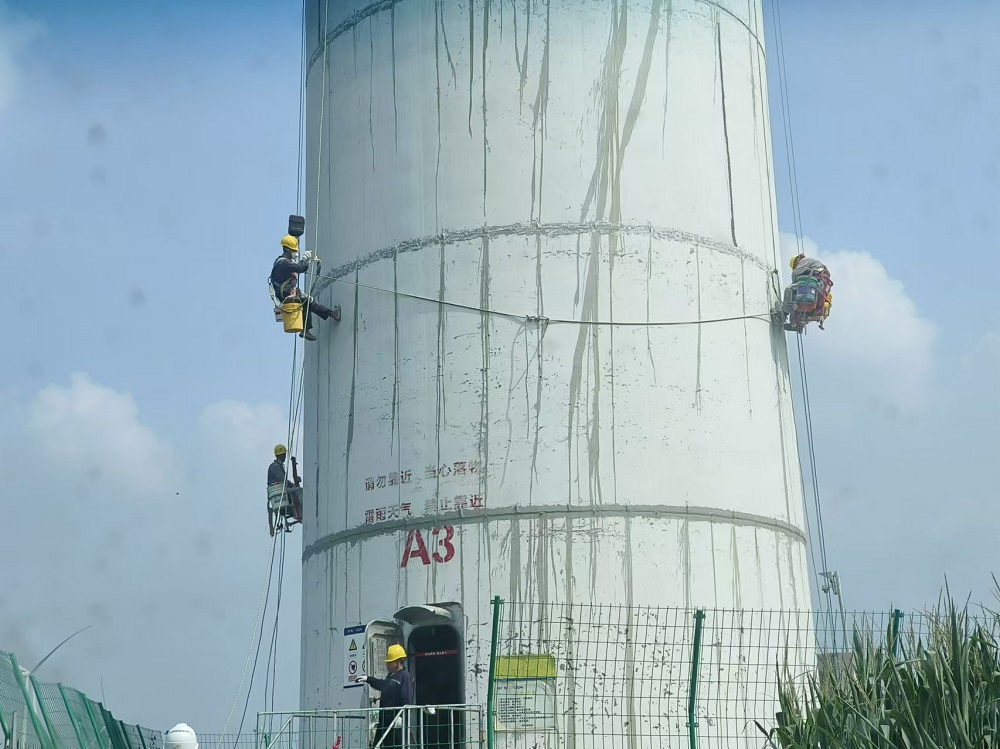 山東省德州市的中廣核慶云尚堂風(fēng)電場位于山東省德州市慶云縣尚堂鎮(zhèn)。WD195-5000型風(fēng)電機(jī)組,混凝土部分為預(yù)制裝配式結(jié)構(gòu),混塔總高110.03m,共28層。M01~M26高3.99m,M27高3.60m,M28高2.4m。M01~M07外徑7800mm,M09~M14外徑6600mm,M16~M28外徑5400mm,M08、M15為過度節(jié)段。除門洞位置外,M01管片壁厚為300mm,M02~M27管片底部壁厚300mm,M28管片底部壁厚1050mm。M01~M15各由兩個C型管片組成,通過豎縫插筋連接并灌漿,組成完整O型管片。管片M16~M28為完整的預(yù)制O型管片。我單位需對塔筒節(jié)間縫隙重新補(bǔ)膠,并對個別塔進(jìn)行空鼓、掉塊及裂縫進(jìn)行修復(fù)。