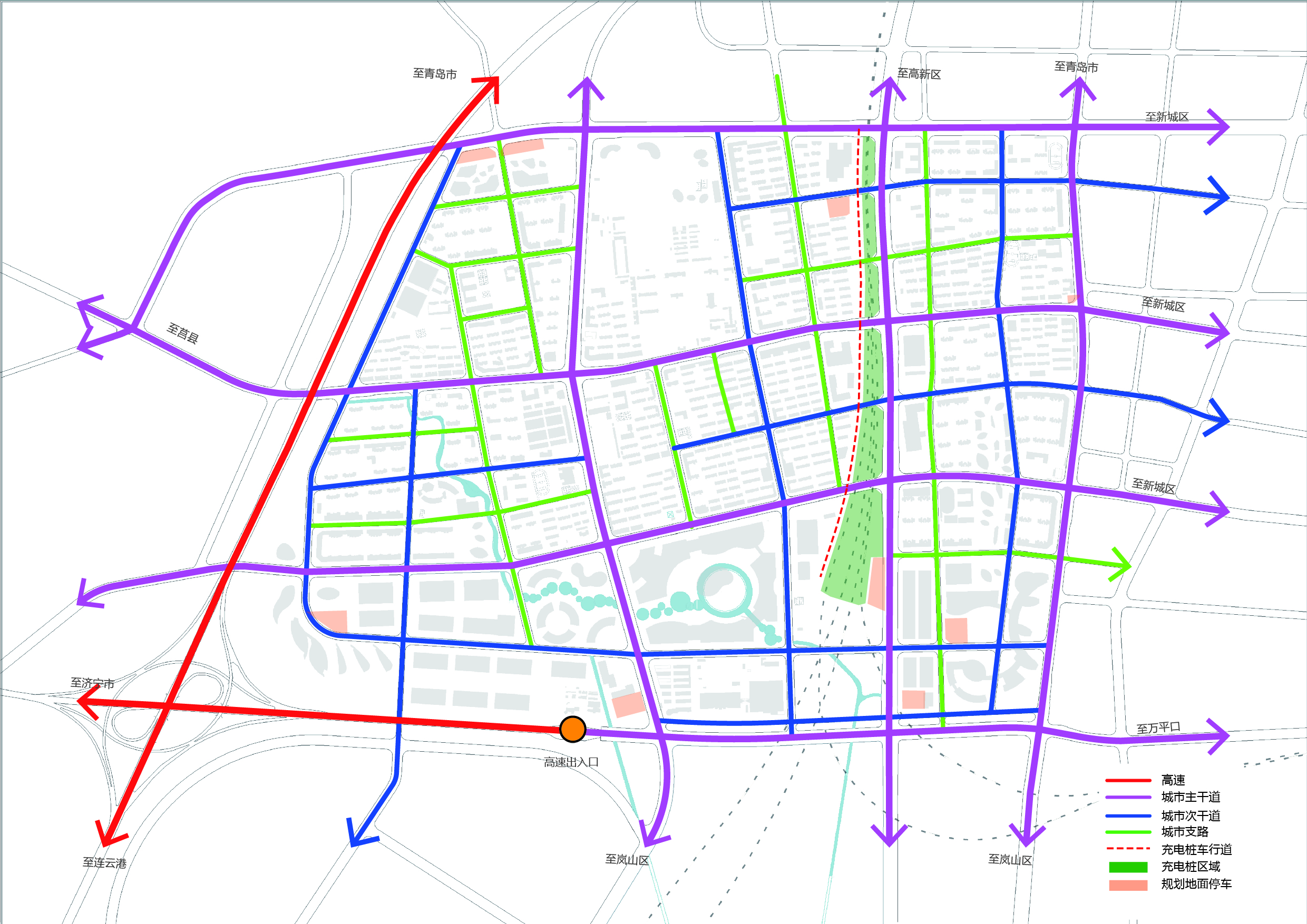 立足基地現(xiàn)狀條件,優(yōu)化功能部署。東向承接老城區(qū)的人口疏散和居住功能;南向突出城西形象展示的門戶功能,重點(diǎn)培育物流總部辦公、現(xiàn)國(guó)際代商貿(mào)、現(xiàn)代物流、都市農(nóng)業(yè)等產(chǎn)業(yè)功能。西向處理好生態(tài)防護(hù)和跨高速交通聯(lián)系的要求。北向完善高品質(zhì)生活配套。