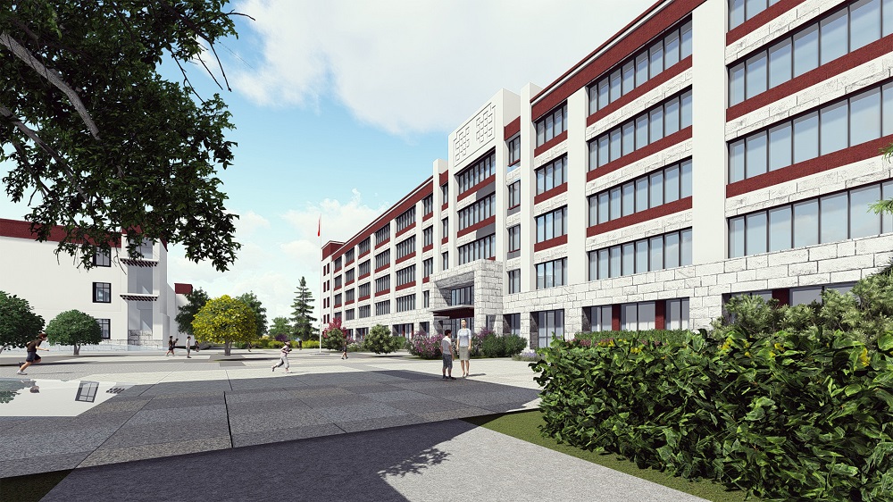 本項目位于日喀則經濟開發(fā)區(qū)內,辦學規(guī)模為36班的初級中學,包括教學樓、實驗樓、食堂、風雨操場、宿舍樓等建筑。規(guī)劃建設用地為56014.94㎡,總建筑面積34558.95㎡,其中地上建筑面積29505.67㎡,地下建筑面積5053.28㎡。本項目南、北、東、西側均為規(guī)劃道路,南側地塊為規(guī)劃薩嘎中學和崗巴中學。
