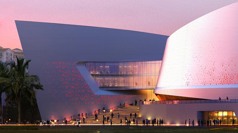 海南省非物質(zhì)文化遺產(chǎn)展示中心項目位于海南省??谑协偵絽^(qū),總建筑面積52180平方米,建筑高度42米,是海南省十大重點公共文化工程首批落地實施項目。該項目為瓊劇院、非遺博物館及藝術(shù)中心三大功能合一的文化綜合體,主要設(shè)有大劇場、實驗小劇場、綜合排演廳、黎錦館、非遺陳列館、非遺體驗傳習(xí)館、非遺傳承人技藝活態(tài)展示館、藝術(shù)中心等多種類型公共文化設(shè)施。