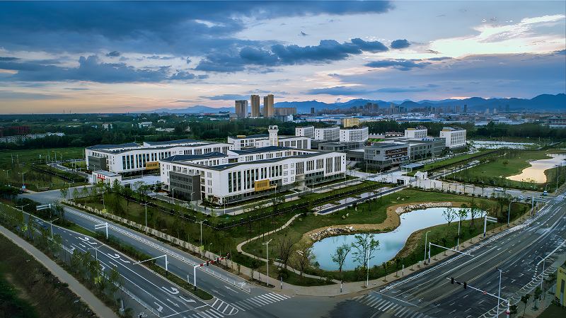 校園布局中以中心雕塑為核心,形成南北兩條“十字軸”關(guān)系,莊重、典雅、對稱、有序,既反映教育民主化的趨勢,又強調(diào)意境創(chuàng)造上的內(nèi)聚性、向心性??臻g尺度宜人,收放合理,又增強其內(nèi)在功能的關(guān)聯(lián)性、互通性。這一系列的建筑及其室內(nèi)外環(huán)境與校園核心中軸相吻合,構(gòu)成學校最具特色與感召力的標志性區(qū)域??傮w規(guī)劃肌理與城市關(guān)系吻合,形成南北兩條帶狀分布,教學區(qū)嚴謹,生活區(qū)自由,根據(jù)功能形成明確的空間形態(tài)對比。沿東西主軸線兩側(cè)布置教學樓、實驗樓,聯(lián)系緊密,自成一體。