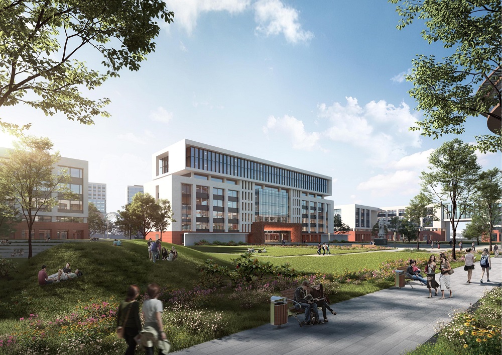 設(shè)計規(guī)劃在校學(xué)生10000人,新校區(qū)總體規(guī)劃以建設(shè)全國一流高等職業(yè)院校校園為目標(biāo),塑造沿空間主軸生長、沿生活水軸展開的優(yōu)美校園空間形態(tài)。